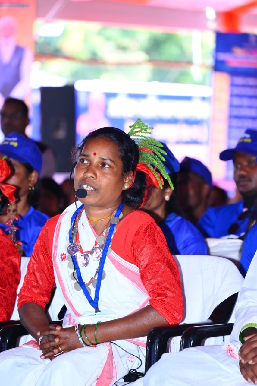 प्रधानमंत्री नरेंद्र मोदी ने विभिन्न योजनाओं के तहत लाभान्वित हितग्राही पहाड़ी कोरवा मनकुंवारी बाई से सीधा संवाद किया।
