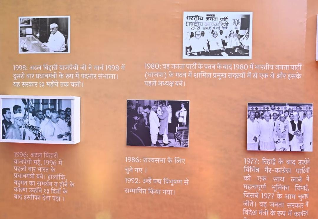 भारत के पूर्व प्रधानमंत्री भारतरत्न स्वर्गीय श्री अटल बिहारी वाजपेयी की जयंती सुशासन दिवस के अवसर पर जनसंपर्क विभाग द्वारा रायपुर के नालंदा परिसर में दो दिवसीय छायाचित्र प्रदर्शनी आज 25 दिसंबर से लगाई गई हैं। प्रदर्शनी में स्वर्गीय श्री अटल बिहारी वाजपेयी की छत्तीसगढ़ से जुड़ी स्मृतियों के साथ-साथ केन्द्र सरकार एवं छत्तीसगढ़ सरकार की योजनाओं की जानकारी भी प्रदर्शित की गई है। प्रदर्शनी में अटल जी के कार्यकाल की उल्लेखनीय उपलब्धियों तथा छत्तीसगढ़ से जुड़े उनके प्रवास के दुर्लभ छायाचित्रों को प्रदर्शित किया गया है जो लोगों के आकर्षण का केंद्र बनी हैं। प्रधानमंत्री श्री नरेंद्र मोदी के नेतृत्व में केंद्र सरकार एवं मुख्यमंत्री श्री विष्णु देव साय के नेतृत्व वाली छत्तीसगढ़ सरकार के जनकल्याण के कार्यक्रमों एवं योजनाओं की उपलब्धियों की झलक भी प्रदर्शनी में लोगों का ध्यान खींच रहा है। प्रदर्शनी में छत्तीसगढ़ राज्य में नक्सल उन्मूलन एवं जनजातीय उत्थान, सामाजिक समृद्धि एवं प्रगति, अधोसंरचना विकास, पर्यटन एवं संस्कृति, नियद नेल्ला नार, प्रधानमंत्री आवास योजना, जल जीवन मिशन, स्वास्थ्य सुविधाओं का विस्तार, युवा कल्याण, कृषक उन्नति योजना, महतारी वंदन योजना, छत्तीसगढ़ में युवाओं के लिए संचालित योजनाएं, समर्थन मूल्य पर धान खरीदी, रामलला दर्शन, डिजिटल भारत सहित अन्य योजनाओं एवं उपलब्धियों को प्रदर्शित किया गया है। प्रदर्शनी देखने आए शासकीय नागार्जुन साइंस कालेज के छात्र शिवम् पांडेय और उनके साथियों मयंक, अभय और राहुल ने कहा कि छाया चित्र प्रदर्शनी में श्री अटल जी के विचारों से अवगत कराया गया है जो सराहनीय है। छात्रों ने प्रदर्शनी में शासन के द्वारा प्रदर्शित योजनाओं की जानकारी को काफी उपयोगी बताया। प्रदर्शनी स्थल पर शासकीय योजनाओं पर आधारित प्रचार सामग्री का भी वितरण किया जा रहा हैै।